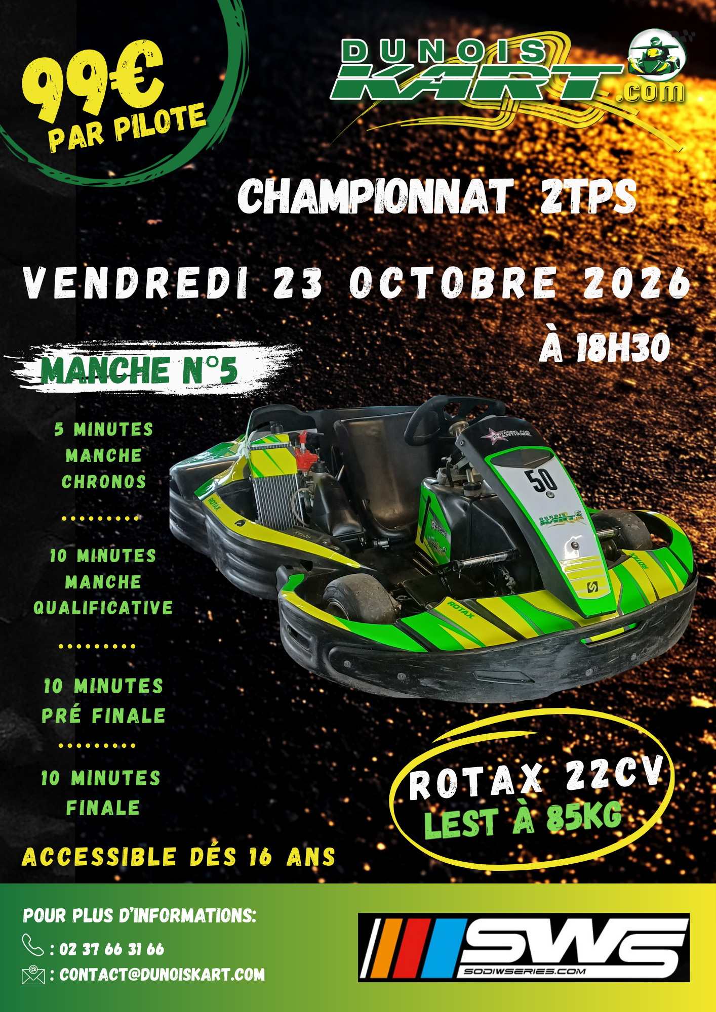 course de 35 minutes avec une manche chronos de 5 minutes, 10 minutes manche qualificative suivie d'une pré finale de 10 minutes et une finale de 10 minutes sur la piste extérieure de 1200m entièrement éclairée !