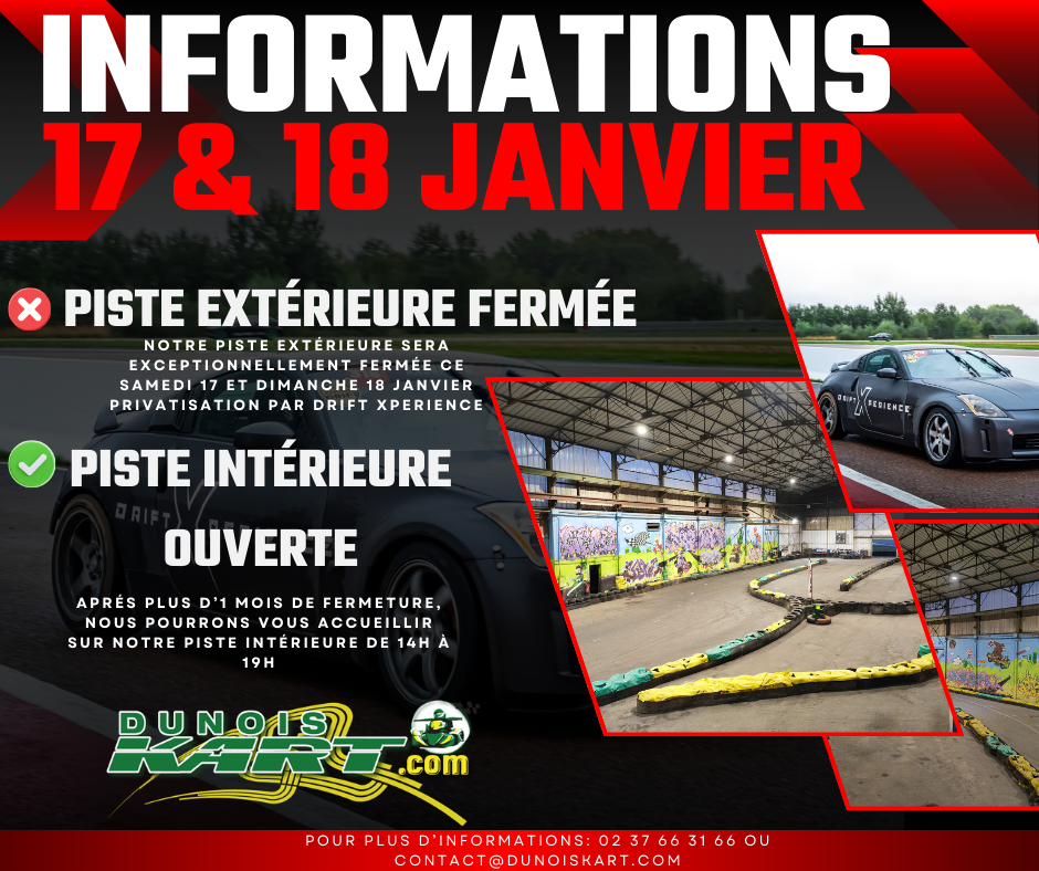 | Situé au coeur du Pays Dunois sur un site de 5 Hectares à seulement 40 min de Chartres, Blois et Orléans, à 1h15 de Paris. Dunois Kart c’est 80 karts, deux circuits, une salle de réception, un club house équipé pour les pilotes, un magasin de pièces détachées, cinq catégories de karts et une association sportive de karting. Dunois Kart vous offrira de grandes sensations au ras du sol et en toute sécurité. Dunois Kart est un complexe unique en région Centre. Les 400 mètres de circuit couvert et les 1200 mètres du circuit extérieur vous permettront de pratiquer le kart dès 7 ans et par tout temps. FAITE UN TOUR DE PISTE EN CAMÉRA EMBARQUÉE |